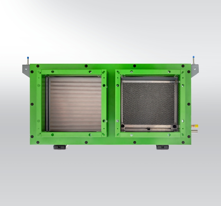 - tegenstroomplatenwarmtewisselaar, optioneel volgens de eisen aan rendement en drukverlies