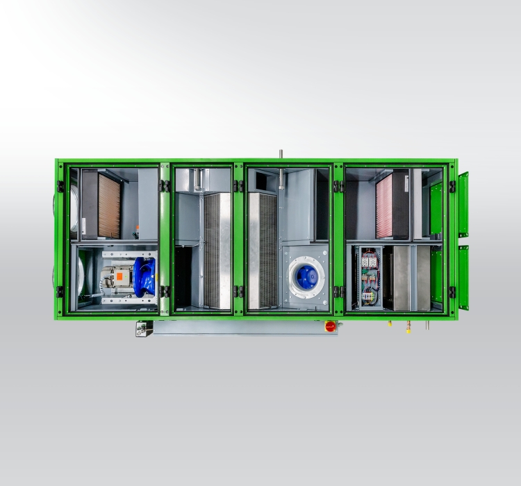 De units worden geproduceerd met vermogens van 500 tot 4 500 m3/ha en worden standaard als Plug & Play geleverd, d.w.z. inclusief geïntegreerd elektronisch bedieningspaneel.