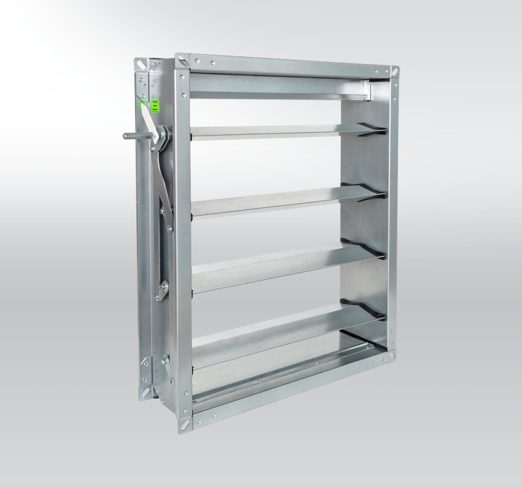 RDM – Contra roterende kleppenregister om de luchthoeveelheid in luchtbehandelingsinstallaties af te stellen of te regelen.
