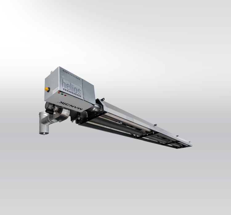 HELIOS – Tmavý trubkový infrazářič plynový pro vytápění průmyslových objektů, skladových hal, sportovních objektů, případně i kulturních domů a dalších objektů s minimální výškou stropu 3,5 m.