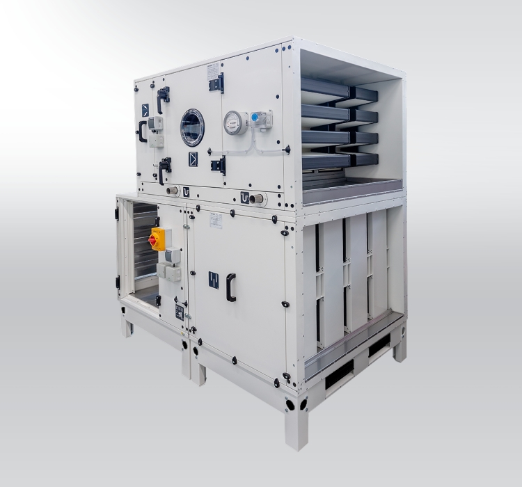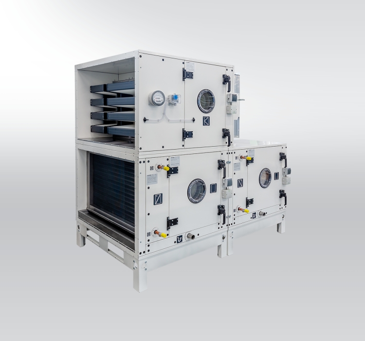 › Einbauteile sind in Bezug auf Konstruktion zur Erfüllung von allen Anforderungen der jeweiligen Normen angepasst (Befestigung und Wartungsart der Filter, Konstruktion von Ventilatoren/Wärmetauschern/Schalldämpfern, Hygiene-Dämmstutzen, Klappen, Kammerverbindungen, usw.)