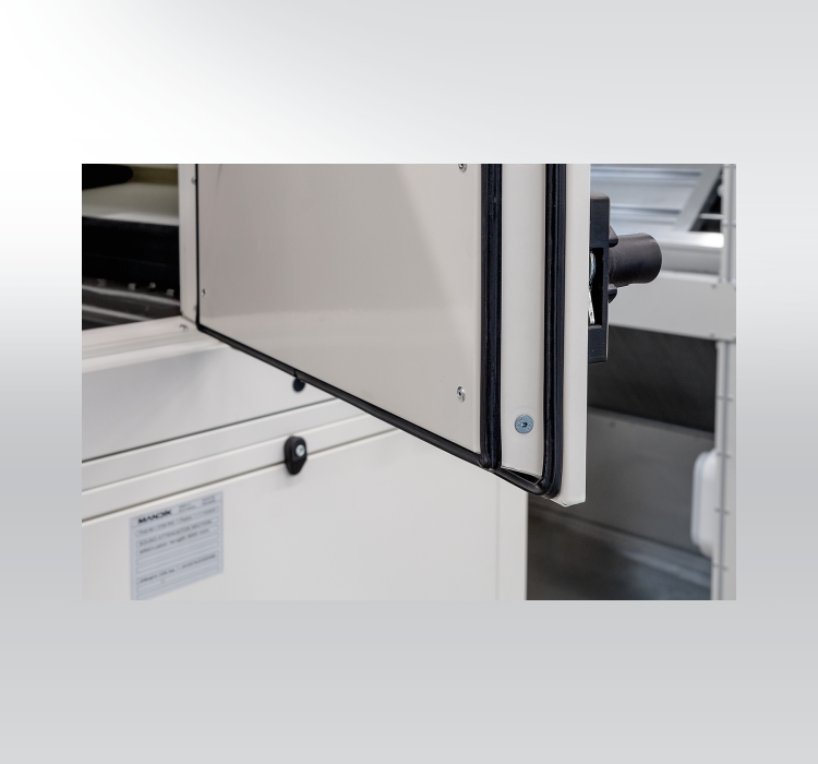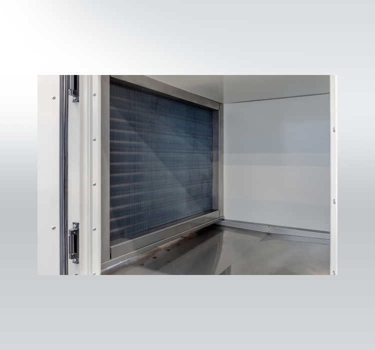 › interior space structurally adapted to all requirements of hygienic standards (eg. supply filter equipped with a condensate drain pan, all condensate pans in a special 3D design, door seals without glue and removable gaskets for disinfection, etc.)