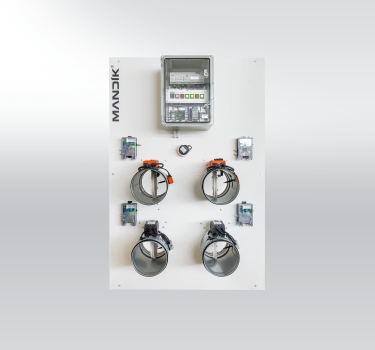 This system is used to monitoring and control up to 64 motorized fire dampers and is compatible with all standard 24V actuators. The system consists of communication and from a central control unit that communicates with individual communication modules via powerline technology. That means communication through 230 VAC power cable, there is no need for any additional cable for data. The entire system operates on the Master & Slave principle, where the communications modules (Slaves) have a MAC address automatically set, the superior central control unit (Master) automatically detects individual modules and no further adjustments are required.