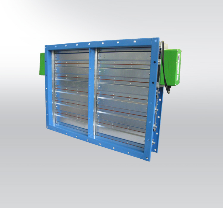 RKTMJ – Multi-leaf regulation damper resistant against seismic events, effects of high-pressure and to higher air flow velocity. Usable as insulating damper, tight insulating damper, low overpressure damper.