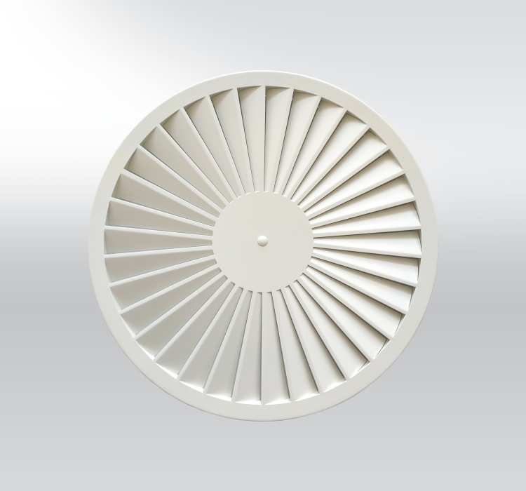 VVPM – der Auslass mit Wirbel-Luftausströmung und festen Lamellen. Es handelt sich um ein lufttechnisches Endstück zur Luftverteilung, das eine optimale Anpassung der Abluftströmung je nach dem Bedarf der klimatisierten oder belüfteten Räume ermöglicht. Durch den drallförmigen Luftaustritt wird eine intensive Durchmischung mit der bestehenden Luft sichergestellt.