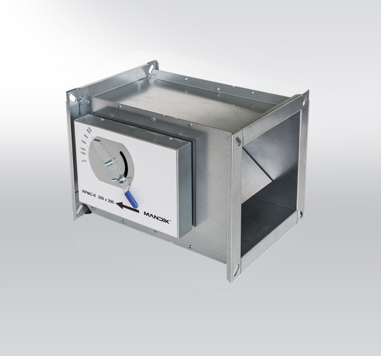 RPMC-K – diese Volumenstromregler für einen konstanten Luftdurchfluss sind für Zuluft- und Abluftsysteme vorgesehen. Die aerodynamischen Kräfte, die durch die Strömung auf das Blatt wirken, werden durch die Steuereinrichtung mit der geforderten Luftströmung kompensiert.