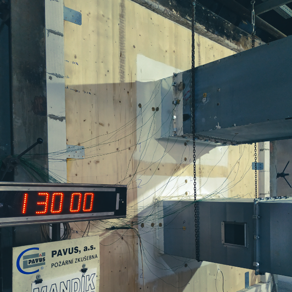The FDMB damper installed into wall construction made from a CLT panel with a thickness of 100 mm achieved fire resistance EI 90 S.